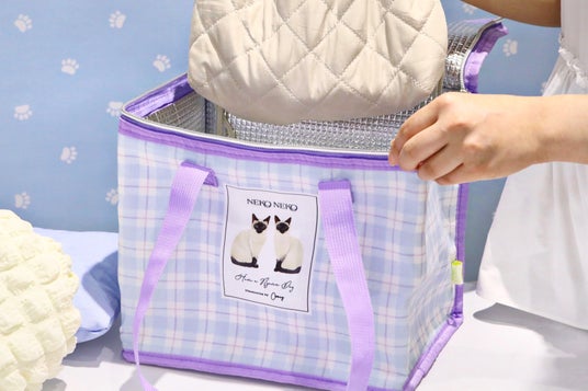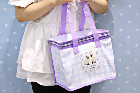 れる、毎日使いできる保冷バッグです。イラストは、「ねこねこチーズケーキ」の看板ねこ