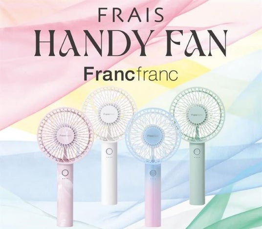 Francfrancの大ヒットアイテム「フレ ハンディファン」「フレ スマートハンディファン」シリーズから、アインズ&トルペ限定カラーとしてグラデーションブルー、マーブルピンク(画像手前2点)が登場!