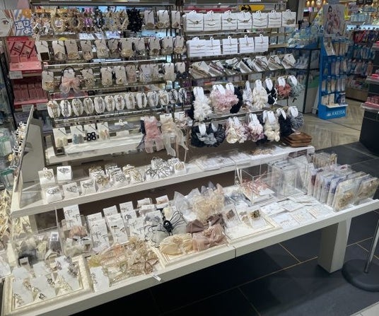 売場の一角にあるアクセサリースペース。実は全国で売上1位なんです!価格帯は1,500円~3,000円と比較的リーズナブル。種類もピアスやネックレス、ヘアアクセサリーなど豊富です。