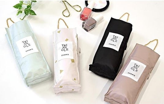 晴雨兼用で折りたたむとほぼスマホサイズのTRIANGLEシリーズ。手に引っ掛けられるチェーン付きで見た目はまるでクセサリー!ミニカバンに入れても嵩張りません♪