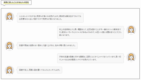 「おしゃべり・相談する」と、誰かと気持ちを共有することで安心感を得られます。