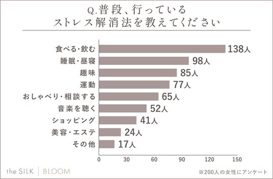 株式会社HYV(本社:東京都目黒区、代表取締役:茅野 航平)が運営する「the SILK BLOOM」では、「女性がストレスを解消する方法」に関するアンケート調査を実施いたしました。