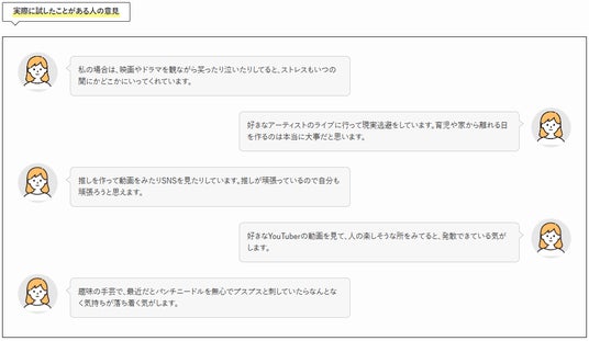 映画鑑賞・推し活など、内容はさまざまですが、自分の好きなことに没頭する時間が、心を軽くする要因となっているようです。