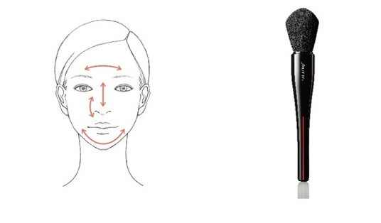 1.ブラシに適量をとり、Tゾーンや皮脂が気になる部分を中心におさえるようにつけます。