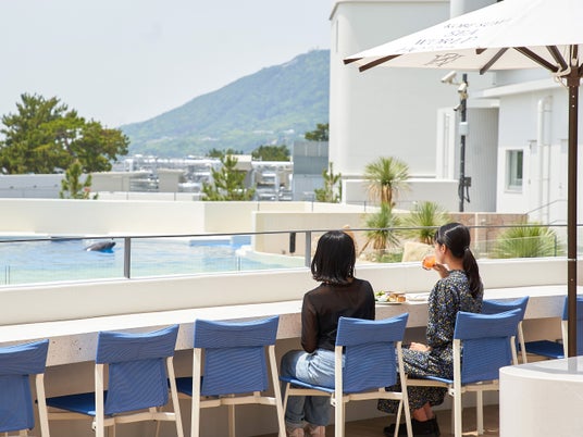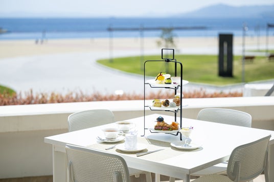 お飲み物は1925年から続く老舗「神戸紅茶」より日本紅茶協会認定ティーアドバイザーがセレクトした4種類の紅茶をはじめ、コーヒーなどをお好きなだけお楽しみいただけます。テラスからイルカを眺め、爽やかな海風を感じながら至福のひとときをお過ごしください。