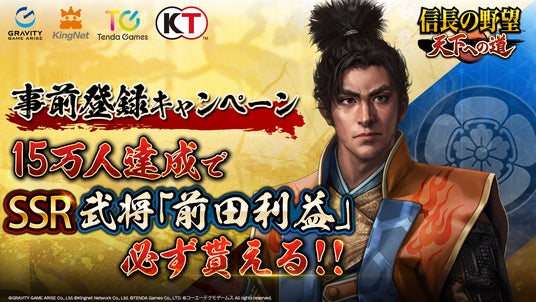 ゲーム内通貨や武将が獲得できる「初陣記念募集券」、さらに15万人達成時にはSSR武将「前田利益」を全員にプレゼントいたします。