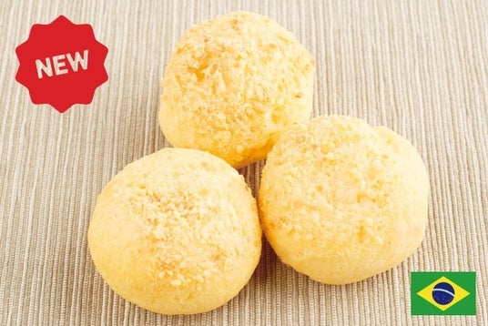 ブラジル生まれのチーズパン「ポンデケージョ」。もちもち生地にモッツアレラチーズを混ぜ込み、粉チーズをまぶして焼き上げました。チーズづくしでチーズ好きにはたまりません!