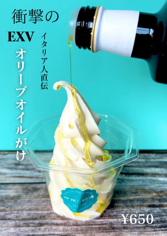 イタリアンソフトクリーム専門店「ナポリの青」(宮城県仙台市)では5月からマスカルポーネソフトクリームにオリーブオイルをかけた新たな商品を発売いたしました。