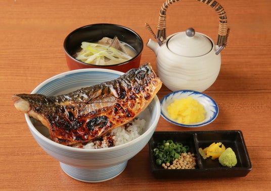 ランチタイムでは、ビジネス街・人形町の立地に合わせ、炉端焼きを活かした自慢のランチメニューを種類豊富にご用意。中でもイチオシの名物「鯖めし」は、脂の乗った “鯖” をふっくらと焼き上げ、豪快にどんぶりに盛り付けました。まずは、鯖の身をほぐし、特製タレが絡むごはんと混ぜ合わせてお楽しみください。鯖の旨味や香ばしさなどをダイレクトにご堪能いただけます。続いて薬味(小葱、山葵、柚子皮など)を加えて味変を楽しんだ後、最後はあご出汁を注ぎ、お茶漬けとしてお召し上がりいただけます。変化する味わいと満足感が一度に味わえる、贅沢な逸品です。