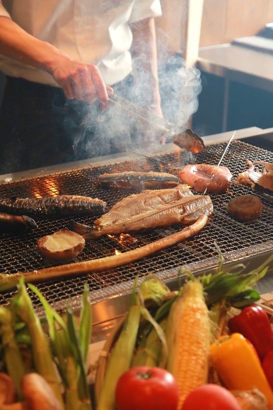 「炉端焼き」は2階の店内中央に専用の焼き台があり、ご注文ごとに職人が丁寧に焼き上げます
