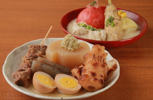 ディナータイムでは、トビウオをメインに海鮮をたっぷり使用した上品な甘みと深みのある味わいの “あごだしおでん” や、濃厚な鶏の旨味が詰まった “鶏だしおでん”、そして “炉端焼き” を存分にお楽しみいただけるメニューを豊富にご用意。名物の「青竹蛸つみれ」や「骨付き鶏」、定番の「大根」や「玉子」から、おでんでは珍しい「トマト」や「じゃがバター」のおでんなど、味わい豊かなラインナップが揃います。また、ディナータイム限定で長崎市の伝統柑橘 “ゆうこう” を餌に育てた貴重な「ゆうこう真鯛」や、ご注文いただいてから炊き上げる「鮭といくらの土鍋飯」も 〆の一杯として、ぜひご賞味いただきたいオススメ商品です。その他、肉・魚を使用したこだわりの逸品料理で、心ゆくまで贅沢なひと時をお楽しみください。