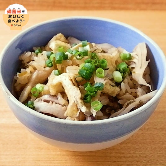 「備蓄米で!塩昆布ときのこの炊き込みごはん」