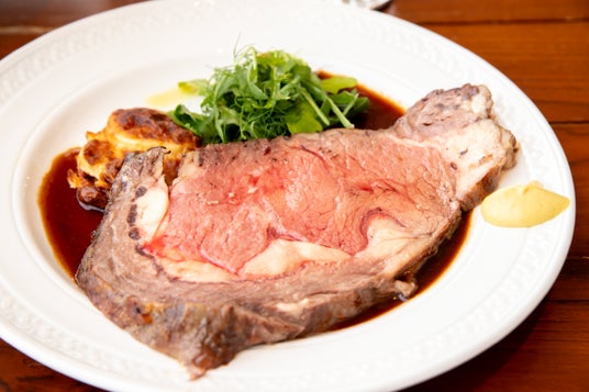 ・牛リブアイのローストビーフ ジャガイモグラタンと赤ワインソース