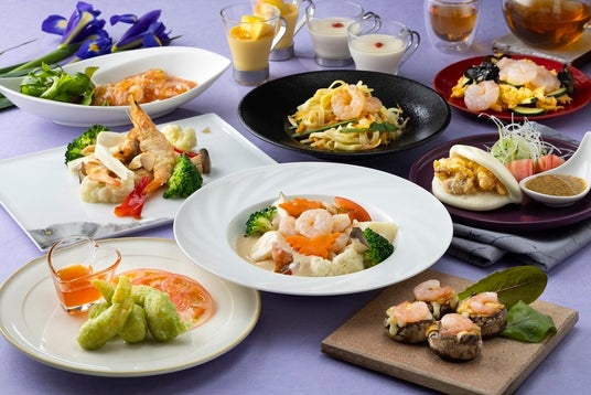 中国料理「桃李」では『海老フェア』を開催「潮来市産フォーと海老のカレー炒め」や「香取市産マッシュルームと海老のガーリックチーズ焼き」「佐倉市産やまといもとソフトシェルシュリンプのにんにく炒め」といった、3市の食材と海老を合わせた、初夏を彩る中国料理をご提供します。