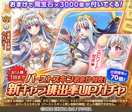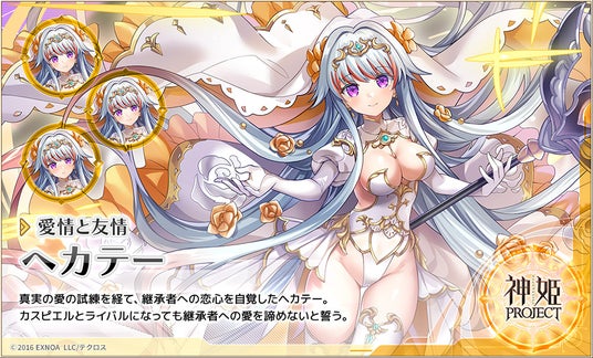 合同会社EXNOA(本社:東京都港区、CEO:村中 悠介、URL:https://games.dmm.com/ )が運営するDMM GAMESにおいて『神姫PROJECT』は、「キャスパリーグ」「ヘカテー」が新衣装で登場する事を発表した。さらに5月19日にプレミアムパスが更新された。