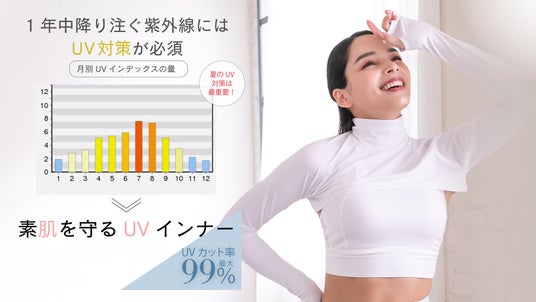 肌の老け見えの原因「紫外線」から守り、汗をかいてもサラっと快適!身体の動きにフィットするスポーツインナー