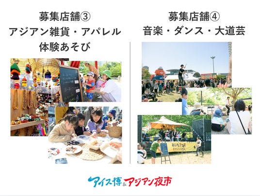 募集ジャンル:アジアンフード、ドリンク、雑貨、体験、パフォーマンス