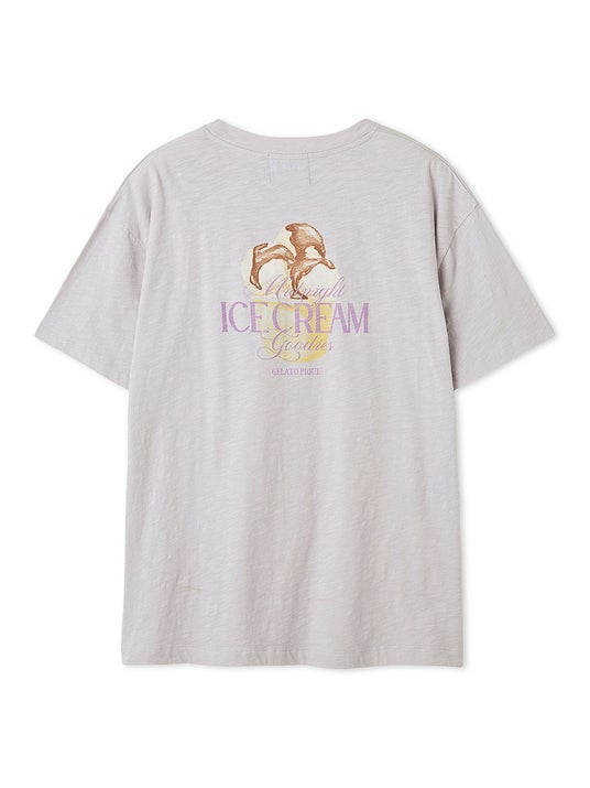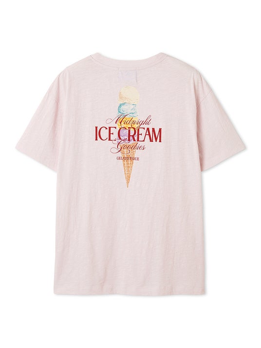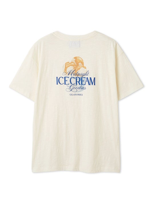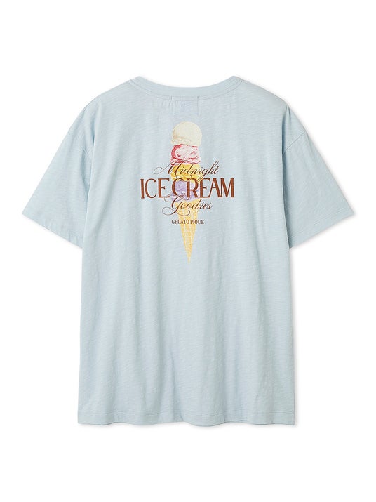 程よい透け感とヴィンテージのような風合いがカジュアルなスラブ素材を使用した、夏にぴったりなカットソーシリーズ。Tシャツの背中には、自分へのご褒美につい食べたくなるようなアイスクリームのアートを大きくプリントしています。2種類のアートから気分に合わせて選べる4色を展開しています。夏のお出かけや旅行先でも快適に着用いただける、接触冷感素材が魅力です。