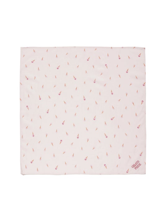チョコチップとストロベリーの小さなコーンアイスを沢山ちりばめた、キャッチーなバンダナが登場。縦横48.5cmサイズのバンダナは、トレンドのバブーシュカとしてヘアスタイリングしたり、バッグのハンドルに巻いたり様々な用途で使用できるマルチなアイテムです。