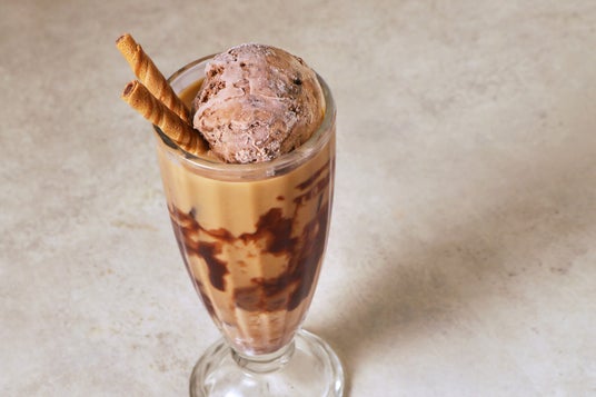 監督兼ピッチャーを務めるチャーリー・ブラウンが立つマウンドをショコラアイスで表現したカフェオレフロート。