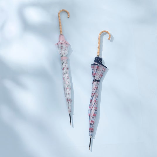 コンパクトで軽く、デイリーに使いやすい仕上がりです。さらに、袋はトートバッグ型になるデザインなので、電車やお店に入った際に、サッと簡単にしまえてバッグのように持ち運べるところも嬉しいポイント。折りたたみ傘も日本で最も人気のRose Miniatureのプリントを使用した、ピンクとサックスの2色展開となっております。
