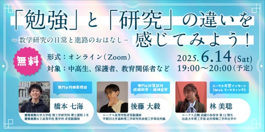 Loohcs株式会社(代表取締役 : 嶺井 祐輝 本社所在地 : 渋谷区代々木)は、このたび、慶應義塾大学や早稲田大学で数学や認知科学を研究する若手研究者・大学院生らを迎え、「理系の学び」の本質に触れる中高生向けトークイベントを開催します。