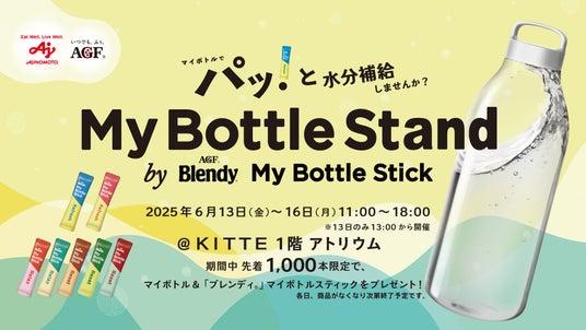 味の素AGF株式会社(代表取締役社長:島本 憲仁 以下、味の素AGF)は、2025年3月にリニューアルした《「ブレンディ(R)」マイボトルスティック》シリーズを活用し、梅雨時の水分補給応援としてオフィスワーカーに向けた水分補給スポットを設置したポップアップイベント『My Bottle Stand』を、2025年6月13日(金)から6月16日(月)まで、KITTE 1階 アトリウム(東京都千代田区丸の内2-7-2)にて4日間限定で開催します。本年の6月は全国的に平年より気温が高くなる予想※1であり、例年よりも梅雨時の脱水症状への警戒が必要です。