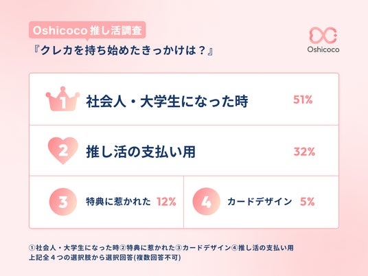 SNS総フォロワー11万人の「推し活応援メディア」を運営する株式会社OshicocoはSNSフォロワーの推し活層、公式LINEの登録者を対象に『クレジットカード事情』に関するアンケートを実施しました。