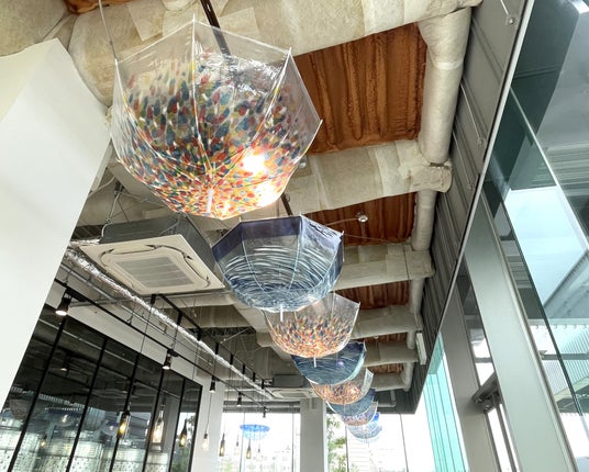 ガラスの音色が降りそそぐ 青森の伝統工芸 津軽びいどろの風鈴傘〈あおもりの海〉