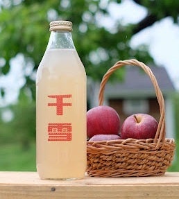 千雪(ちゆき)は変色しにくい性質があり、酸味は少な目で果肉は少し柔らか、香りがとても良いりんごです。ヒビノス林檎園生産のストレートジュースです。