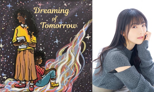 『Dreaming of Tomorrow』カバーアート(制作: PRIDE Schools Innovation High School)と石川由依(写真提供: mitt management株式会社)