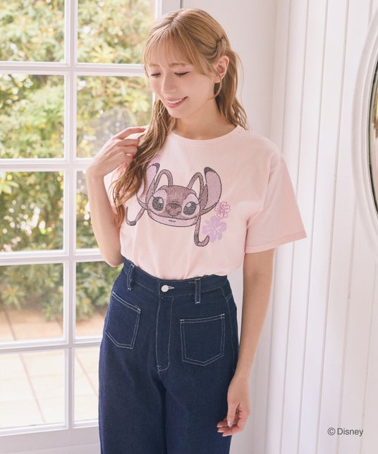 Y2Kな雰囲気を取り入れた“デコT”は、「スティッチ」と「エンジェル」の顔をラインストーンを用いてデザインしました。Areeamらしい淡いカラーに、キラキラと輝くキャラクターが目を惹くおすすめの一着です。