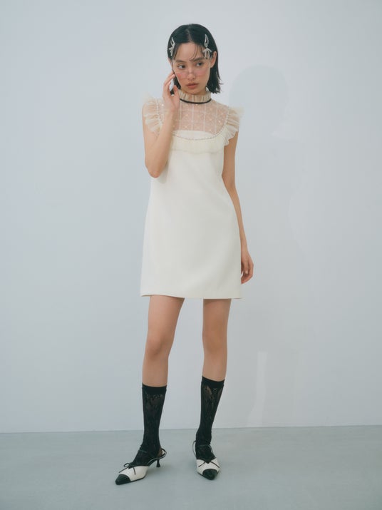 商品名:【L.B CANDY STOCK】チュールドッキングビジューミニワンピース