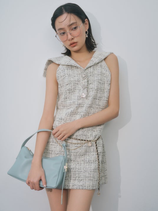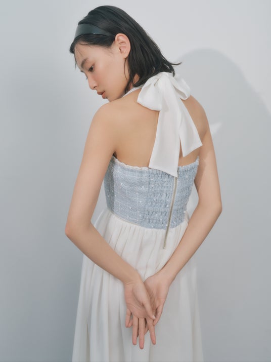 商品名:【L.B CANDY STOCK】ツイードコンビホルターネックワンピース
