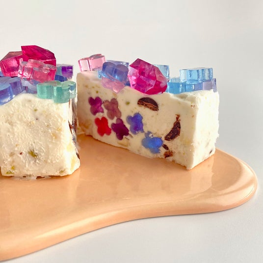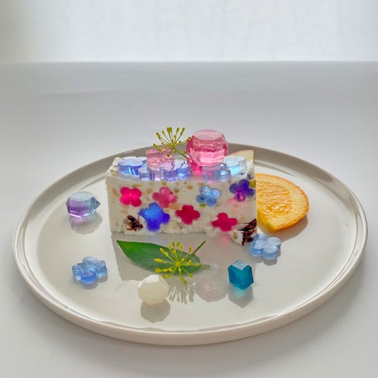 梅雨の季節を彩る紫陽花が輝くアイスケーキ【宝石と紫陽花のカッサータ】が6月限定で登場!リコッタチーズとこだわりの生クリームに、ドライフルーツやチョコレートと琥珀糖の食感を加えた爽やかなアイスケーキ「宝石のカッサータ」の6月限定デザインを販売開始いたしました。色とりどりの紫陽花をモチーフにした切りたての寒天菓子「こうぶつヲカシ」をあしらい、見た目も涼やかで華やかに仕上げました。雨が多くじめじめとした季節でも心がふっと軽くなる、見た目も味も癒しのスイーツ。6月限定の特別な一品をお楽しみください。