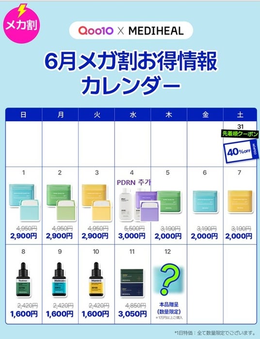 今年2回目となるQoo10メガ割は、2025年5月31日(土)~6月12日(木)の期間で開催!