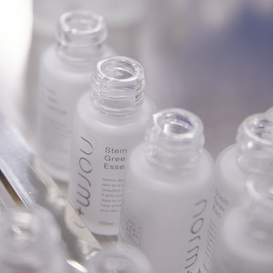 norm+のラインナップ左から、洗顔、化粧水、美容液、クリーム