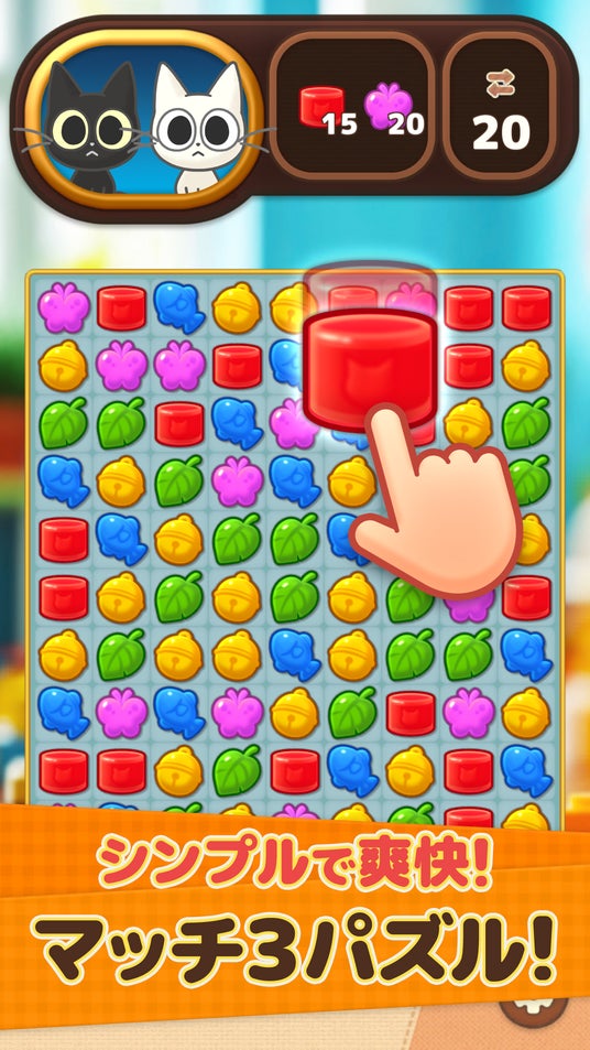 かわいいネコと一緒に遊べる!お手軽かんたんマッチ3パズルゲーム!