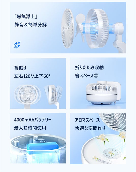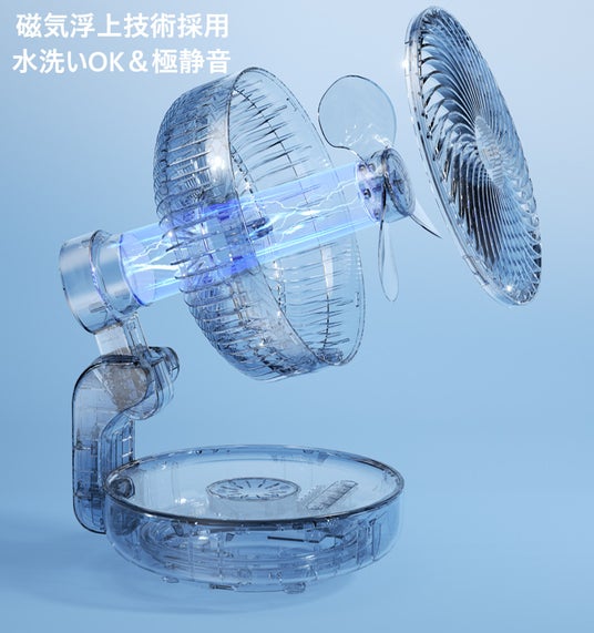6/10発売開始!扇風機は丸ごと洗える時代へ!リニア発想の磁気浮上扇風機、組み立ても洗浄も楽々。