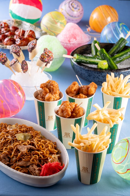 「ダイニング フェリオ」では、期間限定で登場する人気の“にぎり寿司”や目の前でカッティングする“ローストビーフ”、縁日をイメージした屋台グルメなどが並ぶディナービュッフェをお愉しみいただけます。