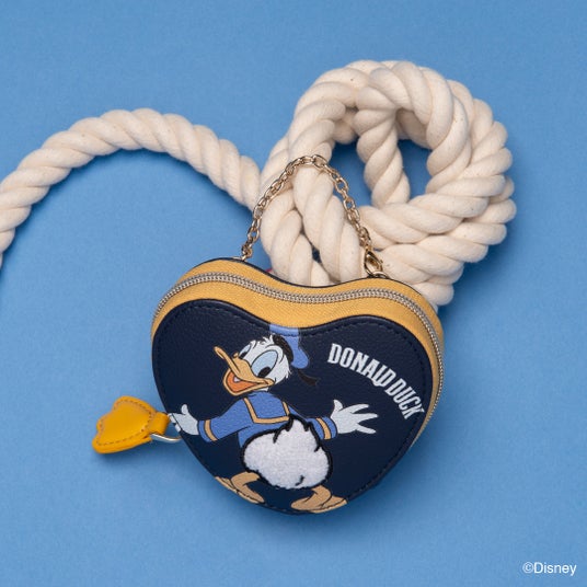 ハート型のポーチチャームに「ドナルド」の楽しそうな姿のアートをデザイン。