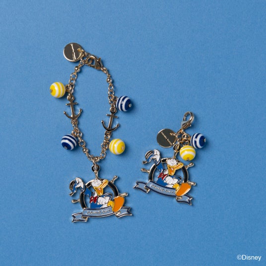 「ドナルド」をイメージした配色にマリンテイストを連想させる、碇マークやボーダー、「デイジー」をイメージしたラベンダーやピンクの配色にお花がデザインされた華やかなアイテム。同シリーズのバッグや小物とあわせて、コーディネートを楽しんでください。