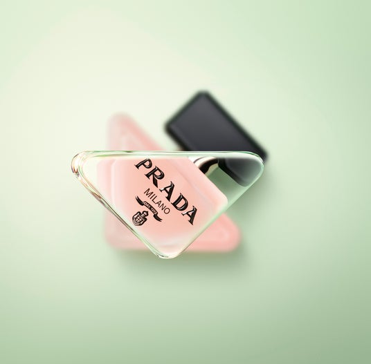 プラダ パラドックスの製品すべてに共通する、プラダの象徴的なロゴからインスピレーションを得たトライアングルボトル。 プラダ パラドックス ヘアミストもその象徴的なトライアングルボトルを引き継ぎつつ、フロストガラスを使用した新たなデザインで登場いたします。
