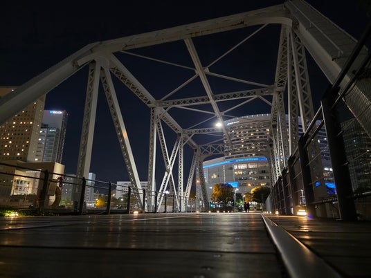 アングルを下げて撮影するとダイナミックさが増し、奥行き感のある印象的な夜景になります。