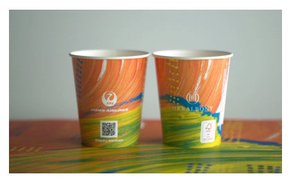 2025年6月~7月の2カ月間、水上詩楽氏の作品「タイトル不明」を起用した紙コップがJALグループ の国際線・国内線サービスに登場し、再び空の旅に彩りを加えます。