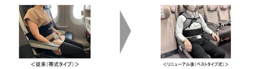 お客さまからのご意見やご要望を踏まえ、2025年5月末より、ご搭乗時、座位が保ちにくいお客さま 向けに提供している上体固定用補助ベルトを刷新しました。