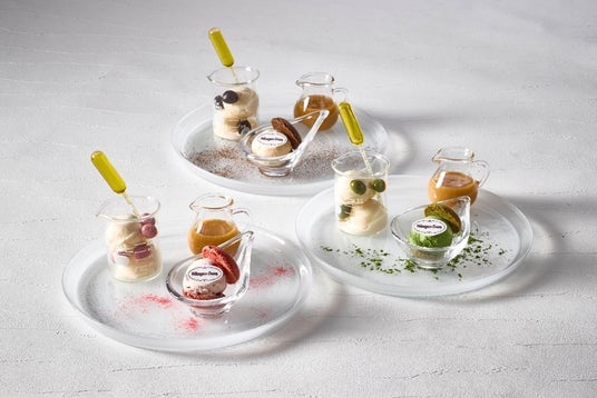 アフタヌーンティーでは、ハーゲンダッツアイスクリームを使用した『ストロベリー』『グリーンティー』『キャラメル』の3種類のフレーバーからお選びいただけるタイアップデザートが今夏も登場。マカロン生地で挟んだアイスクリームをはじめ、ミルクジャムのソースやレモンオイルをかけて、味の変化をお好みで楽しめるスイーツがご堪能いただけます。