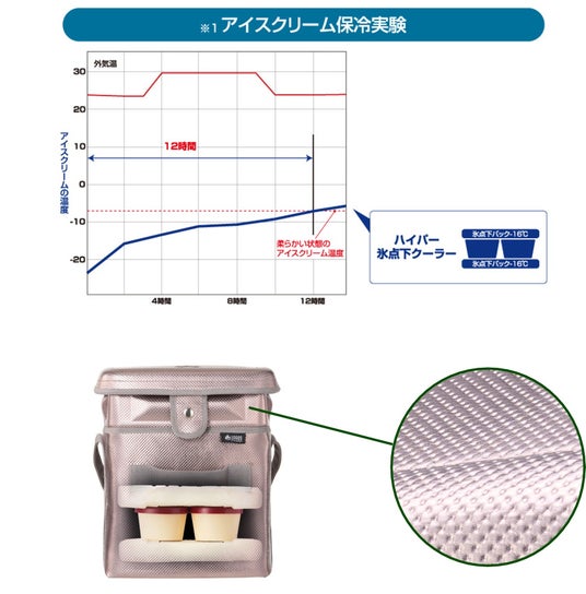 ~氷点下パック(R)との併用で、アイスクリームを約12時間保存可能~