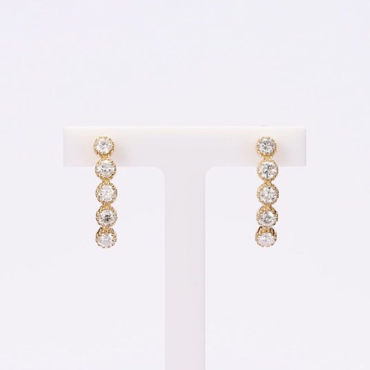 5粒のダイヤモンドを縦に並べたピアスです。立体的なデザインになっています。