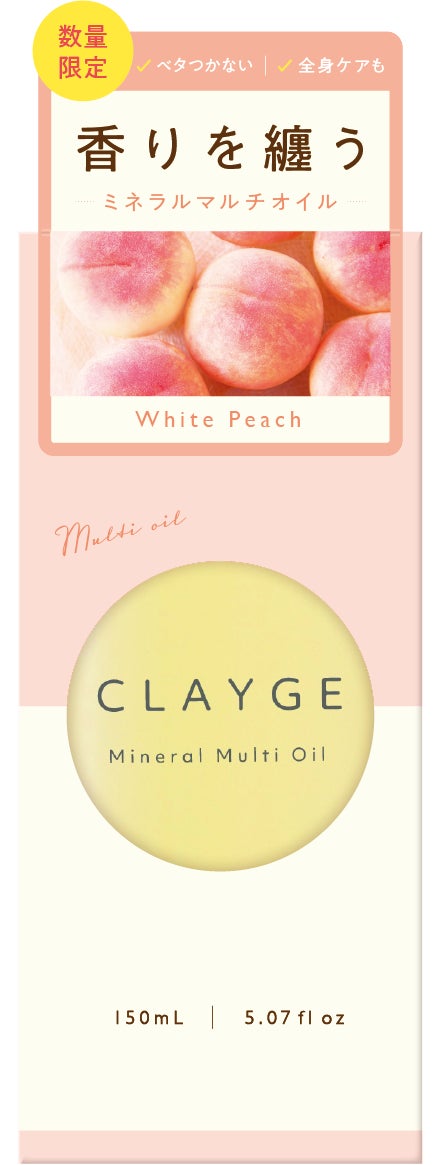 株式会社多田 (本社:兵庫県神戸市)は、ブランド累計販売数3,000万個*¹突破のこだわりのクレイ成分を配合したプロダクトで、毎日の生活に癒しを届ける、ヘアケア・スキンケアブランドの『CLAYGE(クレージュ)』から、初夏の限定フレグランス“ホワイトピーチ”シリーズを、2025年6月初旬より数量限定で発売いたします。